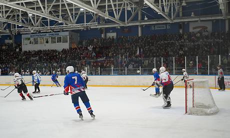 — Добрый день, дорогие друзья! Я рад вас приветствовать в этом замечательном спортивном комплексе. У нас стало хорошей доброй традицией в преддверии Дня российского студенчества собираться здесь, в ледовом дворце, и проводить товарищеский матч между молодежью и старшим поколением. Этот год не стал исключением.