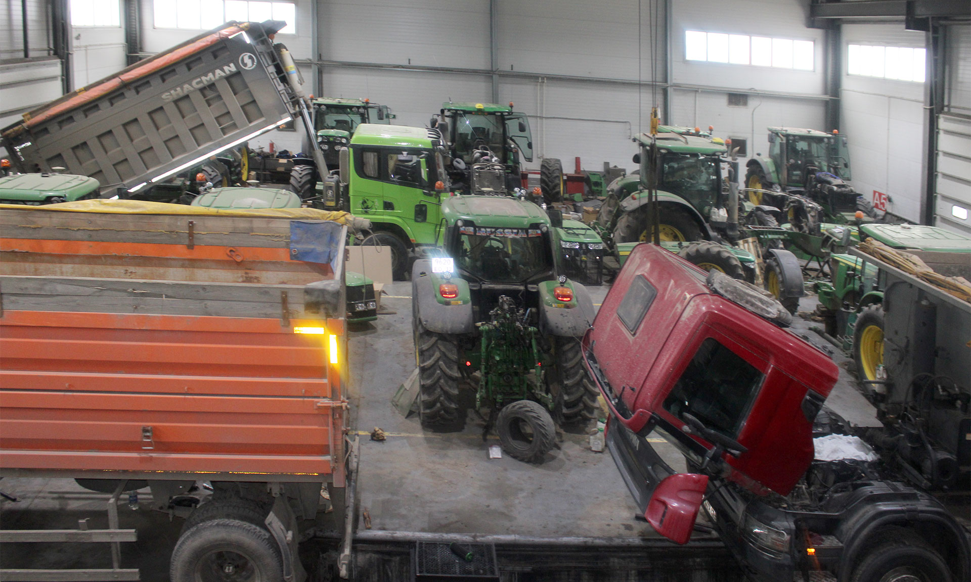Гости побывали в ремонтной мастерской, а также на складе хозяйства. Заместитель директора хозяйства Роман Богомаз подробно рассказал гостям из Беларуси о сельскохозяйственной технике предприятия, о том, как ее ремонтируют специалисты хозяйства. Также было отмечено, что ООО «Меленский картофель» активно сотрудничает со специализированными сервисными организациями. Гости увидели огромное количество современных машин, которые работают на полях этого хозяйства. Роман Богомаз поделился с белорусскими коллегами тонкостями ремонтного процесса, который позволяет обслуживать дорогостоящую технику строго по регламенту, оптимизировать расходы на ремонты без ущерба качеству, сокращать простои, правильно хранить технику и оперативно готовить ее к сезону в срок и без потерь. Делегация осмотрела ремонтную мастерскую и склад, где хранятся необходимые запчасти к тракторам, автомобилям, комбайнам и другим машинам и агрегатам.