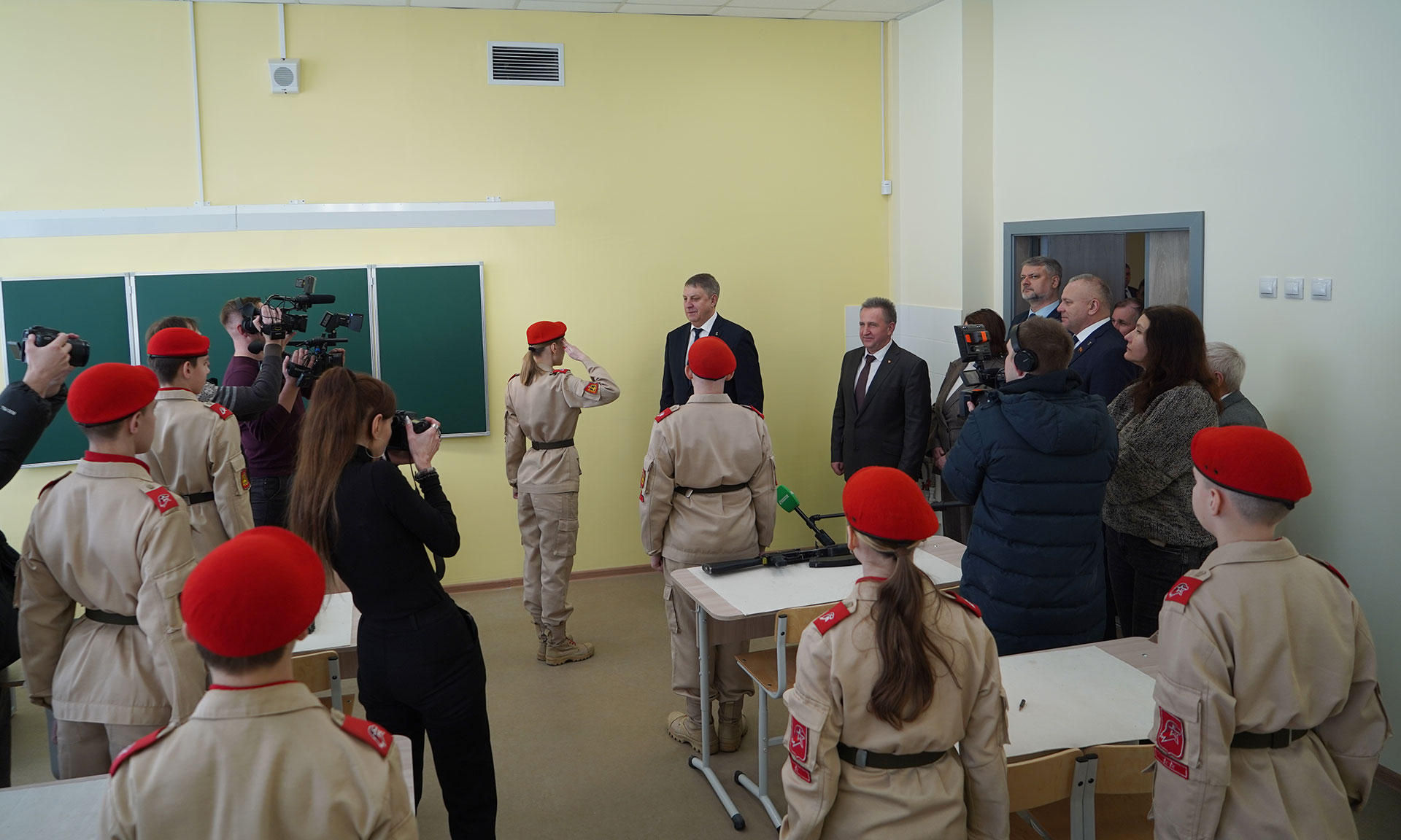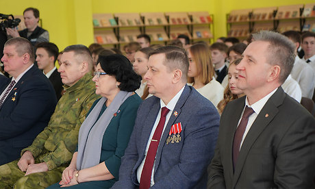 На открытии школы присутствуют Герои Российской Федерации Александр Викторович Постоялко, Андрей Анатольевич Фроленков, кавалер трех орденов Мужества Евгений Владимирович Вылцан. Это примеры для каждого из нас, и особенно — для молодежи, будущего нашей страны. Примеры того, как учиться, добиваться целей и служить своей стране.