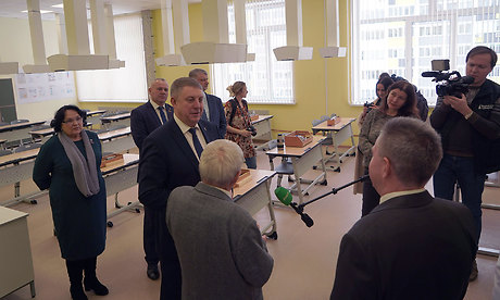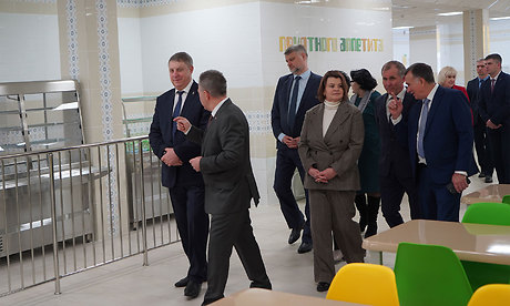 Директор лицея провел для гостей экскурсию по новому зданию. Гости осмотрели экспозицию, посвященную Великой Отечественной войне, планетарий, библиотеку, кабинеты физики, химии, биологии, актовый зал, основ безопасности и защиты Родины, столовую, спортивный блок и убедились: новая школа оснащена самым современным оборудованием и там есть все для комфортного пребывания и всестороннего развития детей.