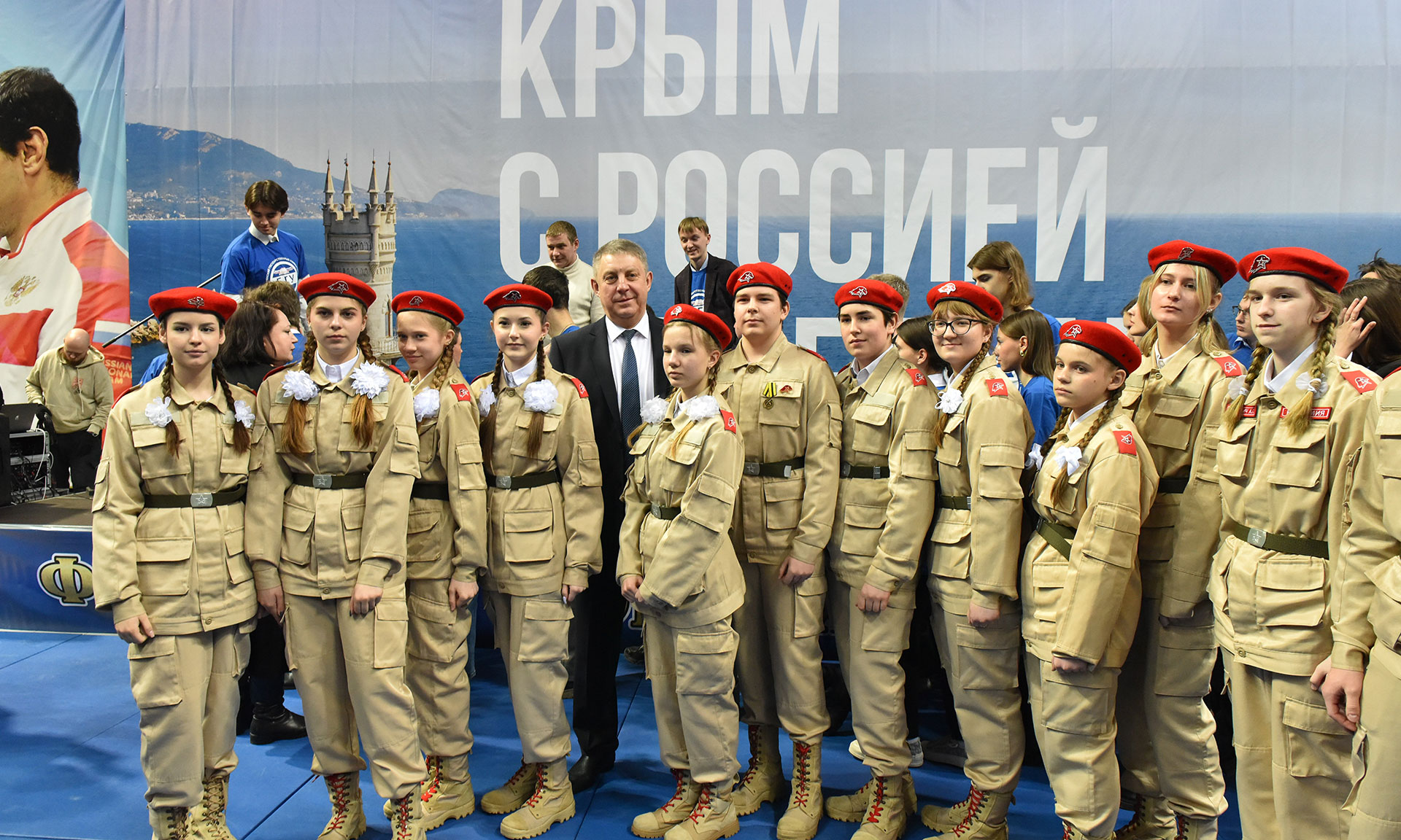 Скоро уже будет три года, как в состав Российской Федерации вошли и исконно русские территории Донбасса. Сегодня здесь присутствуют военнослужащие, наши герои, которые принимали участие в специальной военной операции. Огромное спасибо вам, и всем, кто находится сегодня на линии фронта, за то, что отстаиваете нашу русскую землю, независимость, наши исторические ценности. «Крымская весна» стала началом добрых перемен для всех, кто любит нашу страну и верит в правду и справедливость.