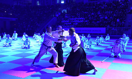 Боевые искусства, вобравшие в себя мудрость тысячелетий, — это могучая сила, которая не только укрепляет физическое здоровье человека, но главное — воспитывает мужество и честь, воспитывает настоящих патриотов своего Отечества. Окунуться в атмосферу мира боевых искусств зрителям помогли спортсмены федераций, объединившихся в Российский союз боевых искусств.