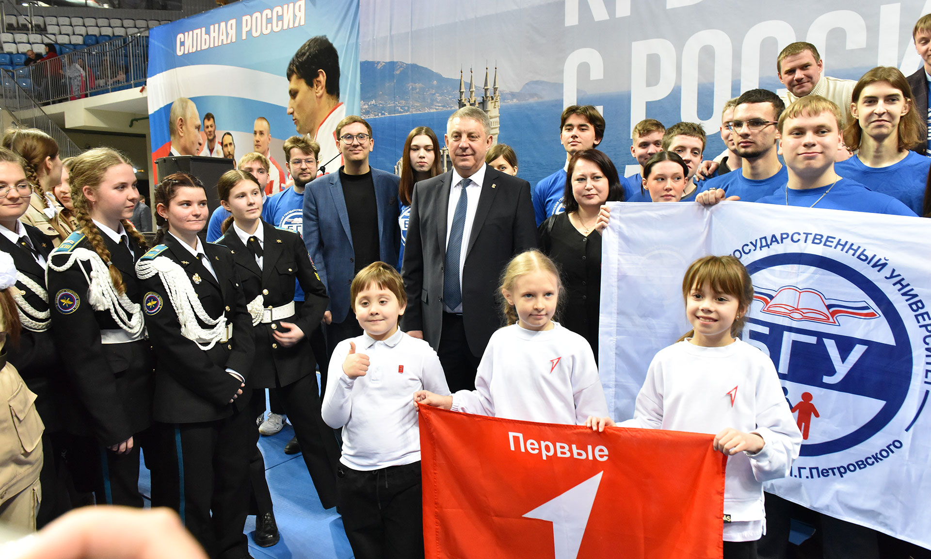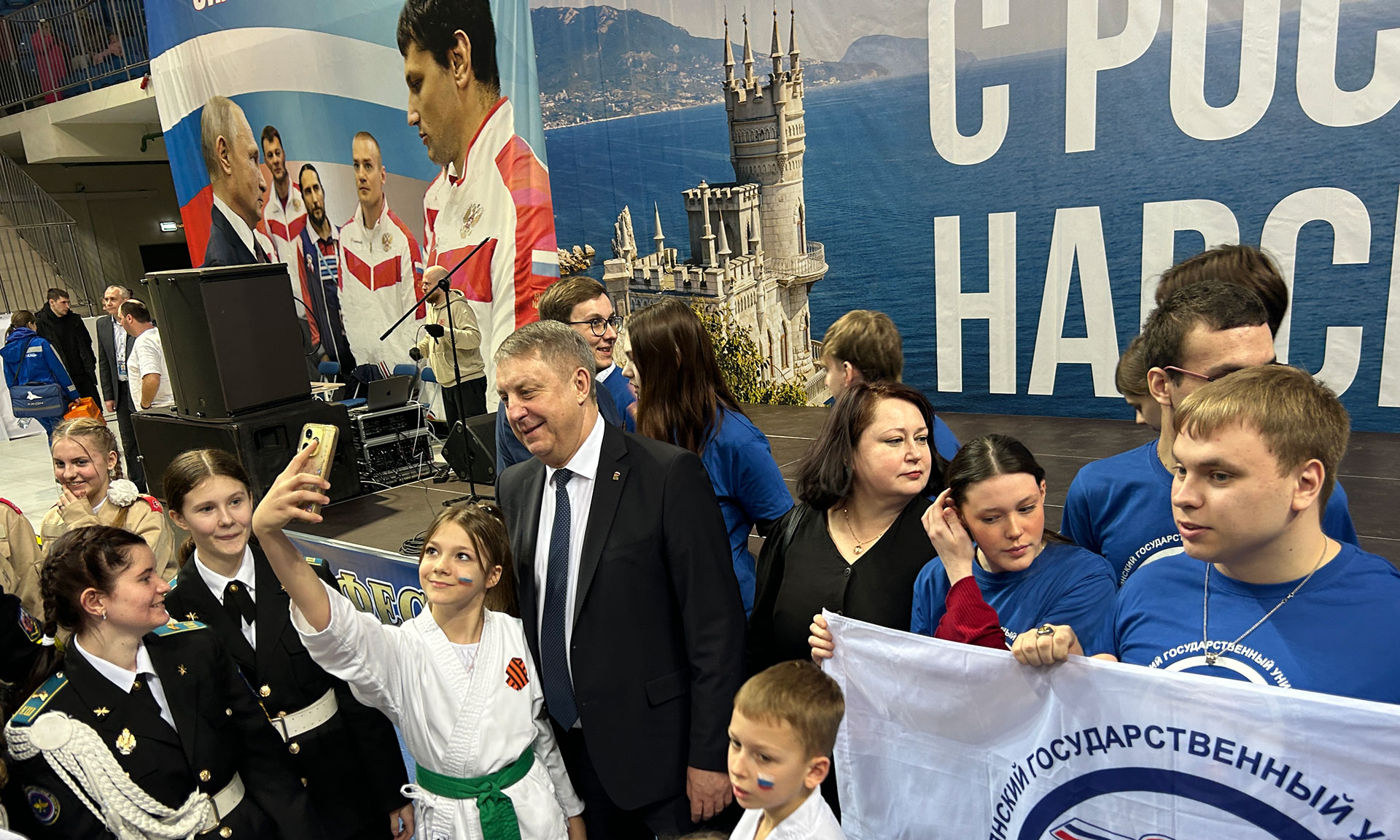 Сегодня мы с вами собрались в этом замечательном Дворце единоборств имени Артема Осипенко, чтобы отметить 11 лет с того исторического момента, когда Крым и Севастополь вернулись в свою родную гавань, в Россию. Я от всей души поздравляю вас, а в вашем лице всех жителей Брянской области с этой знаменательной датой!