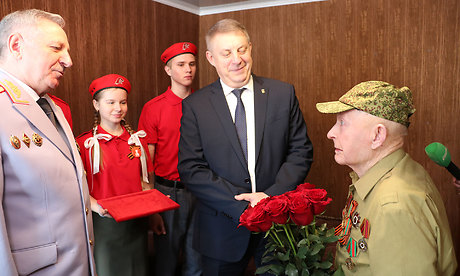 Вместе с Губернатором поздравить ветерана пришел глава администрации Стародубского муниципального округа Александр Подольный.