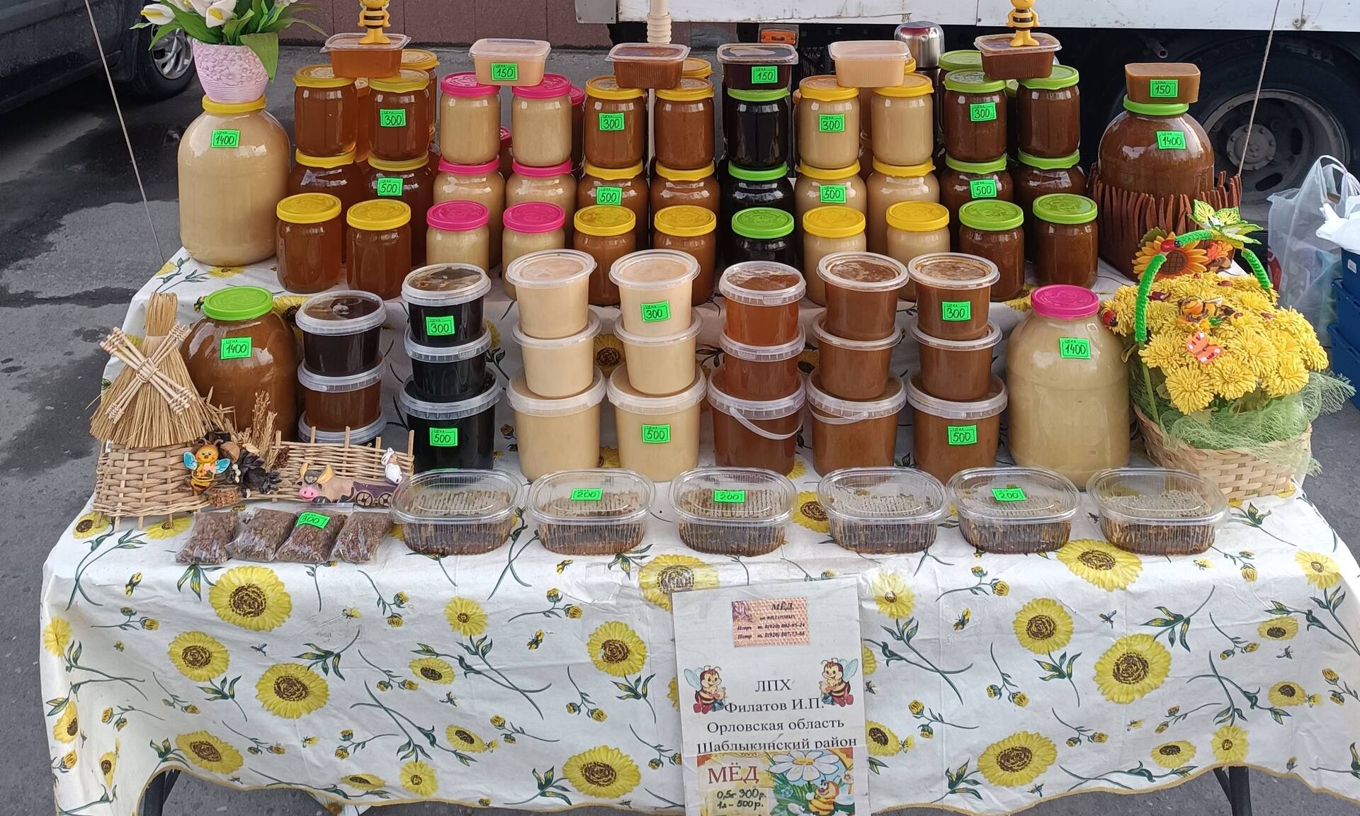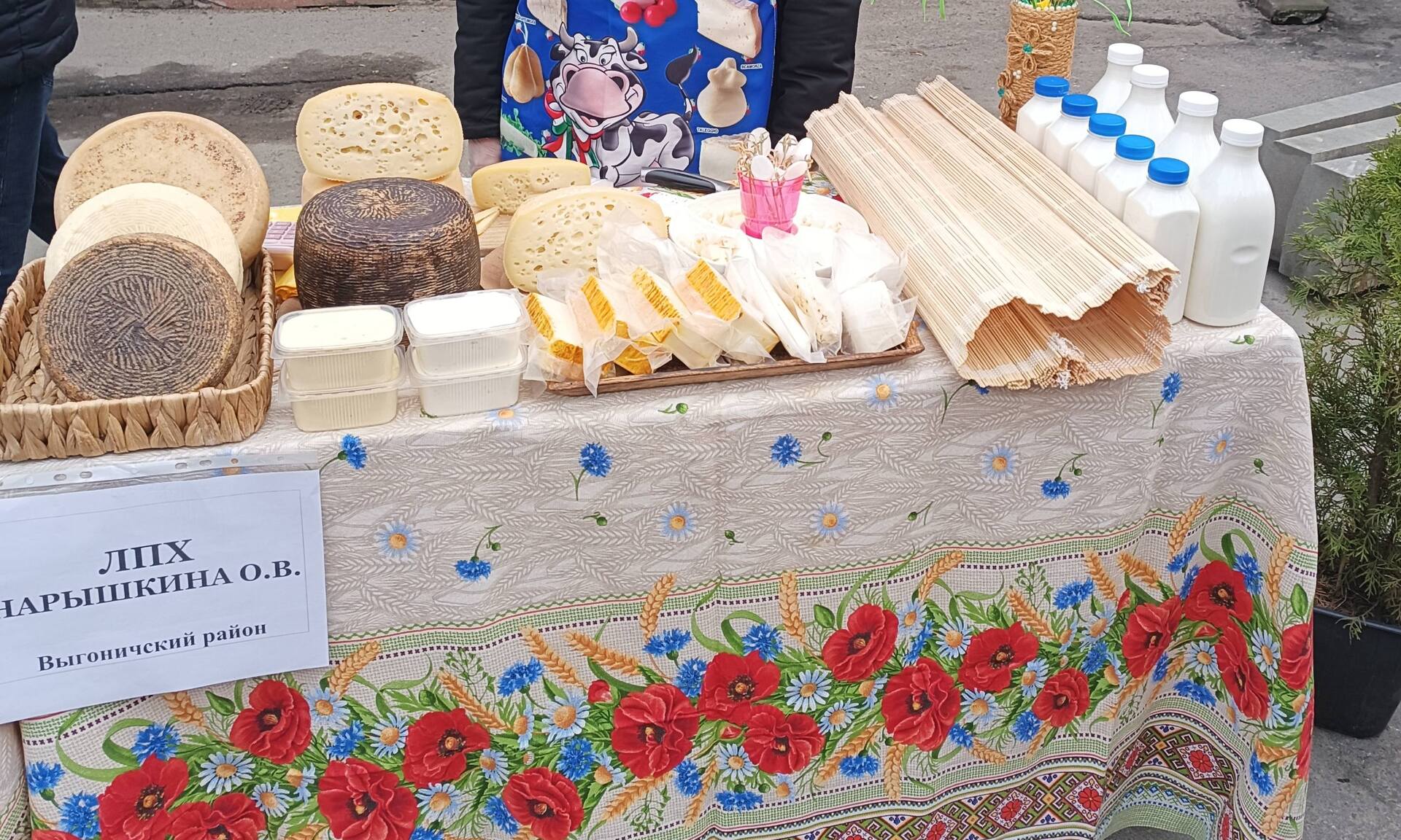 Предлагается большой выбор продукции местных сельхозтоваропроизводителей: картофель, свекла, морковь, капуста, лук репчатый, молочная продукция (молоко, творог, сметана, йогурты, сыр козий), хлебобулочные изделия, яблоки, мед, саженцы, цветы.