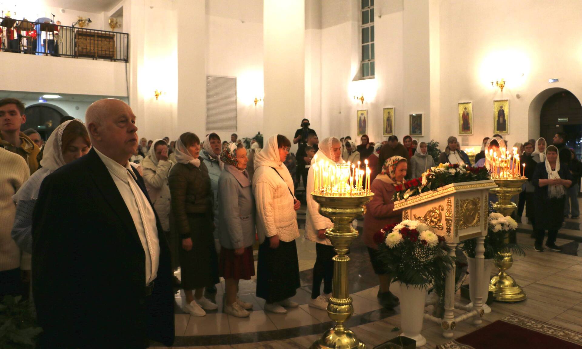 Епископ Владимир совершил Пасхальные Богослужения — полунощницу, Крестный ход, пасхальную заутреню и Литургию святителя Иоанна Златоуста. Владыка зачитал поздравление от Патриарха Московского и Всея Руси Кирилла. Затем Епископ Клинцовский и Трубчевский Владимир вручил гостям из Брянска традиционный подарок — пасхальное яйцо. После чего прошло причащение верующих.
