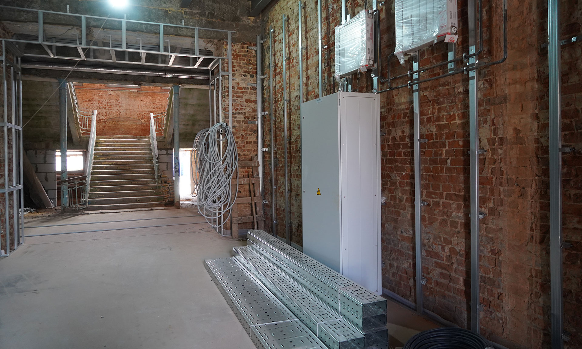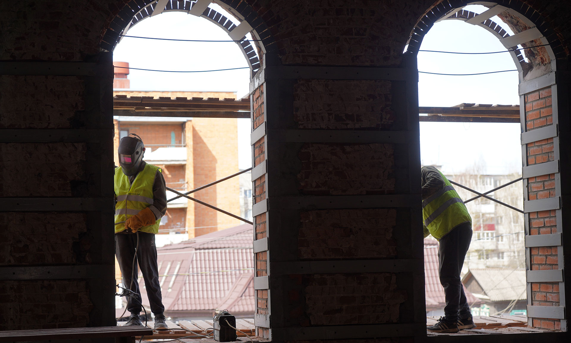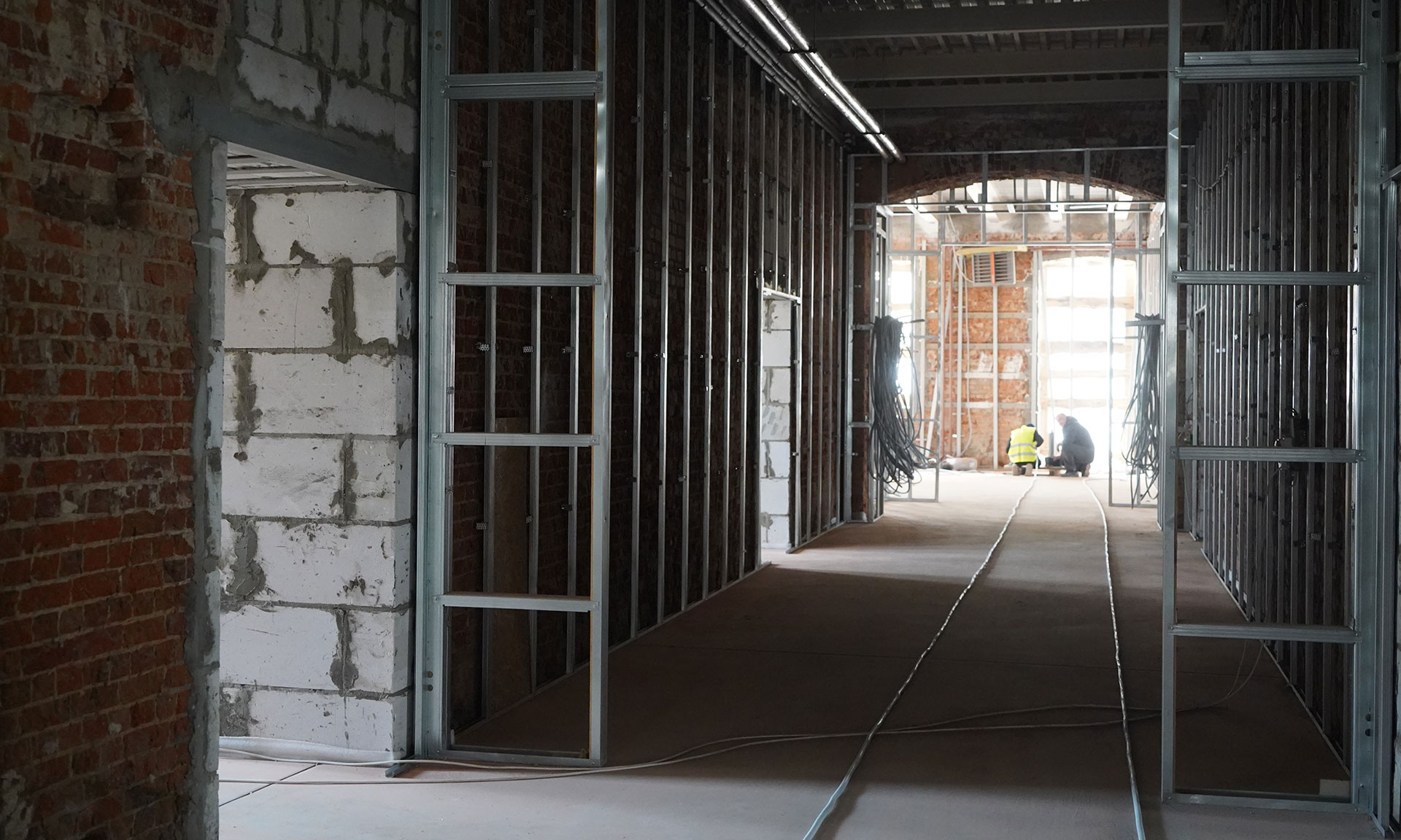 Сейчас строители уже перекрыли кровлю, через месяц будет готов фасад здания, выполняются электромонтажные работы, монтируется система отопления, ведутся отделочные работы.