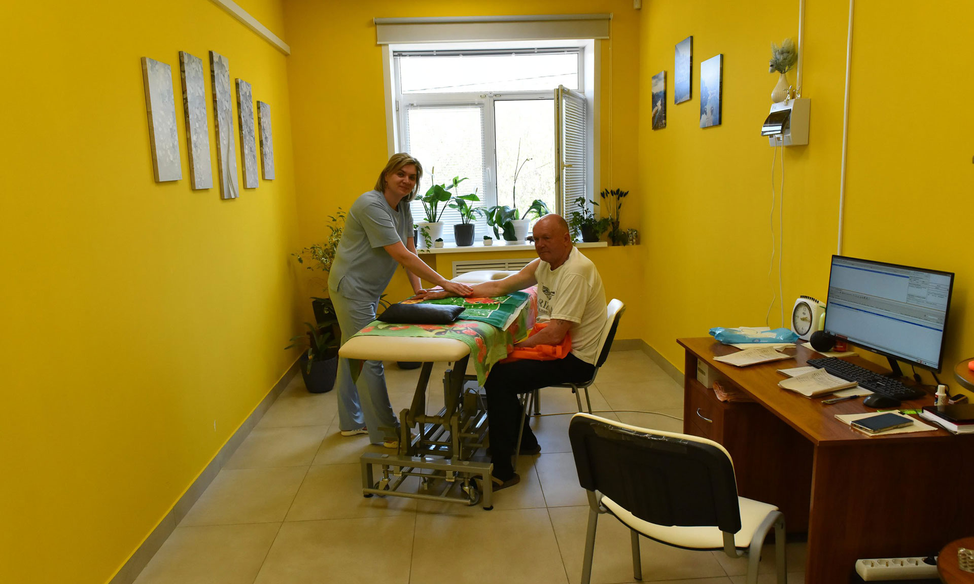 Центр занимается реабилитацией пациентов, перенесших инсульты, травмы опорно-двигательной системы и операции. Новая пристройка соединена с основным зданием переходной галереей. Здесь оборудованы залы лечебной физкультуры, спелеокамера, кабинеты массажа и кинезотерапии, таким образом расширен спектр медицинских услуг, которые оказывают в центре.