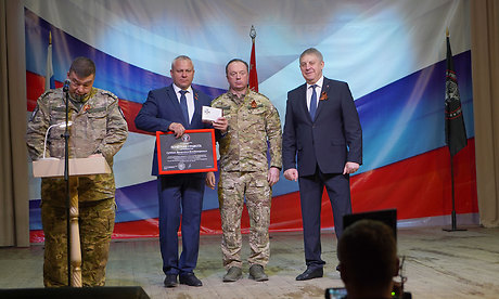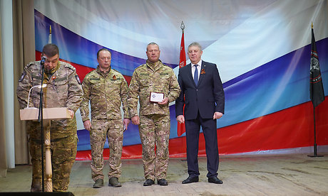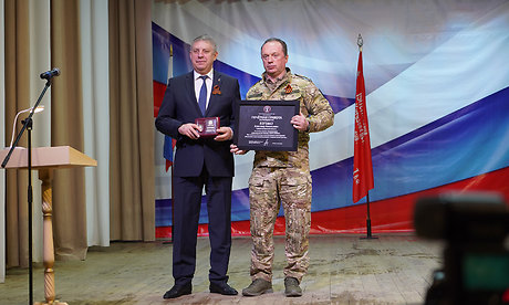 Я говорю эти искренние слова благодарности, Александр Васильевич, от всего командования «БАРС-Брянск», от всех бойцов за ту заботу, которую Вы проявляете уже много лет. От командования «БАРС-Брянск», от наших ребят, которые здесь находятся, за ваше участие я хотел бы наградить Вас знаком и почетной грамотой!