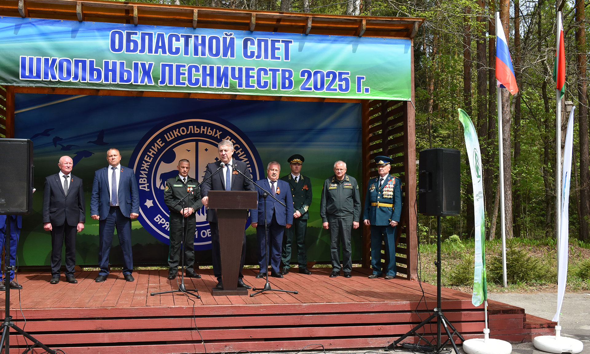 6 мая на мемориальном комплексе «Лесникам-партизанам» в Брянском районе состоялась церемония открытия девятнадцатого областного слета школьных лесничеств Брянской области и открытие памятного знака «Лесникам-партизанам России и Беларуси».