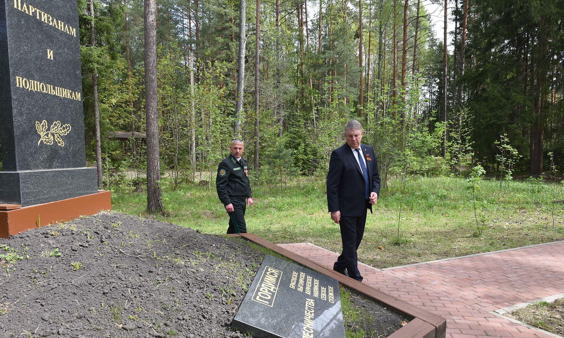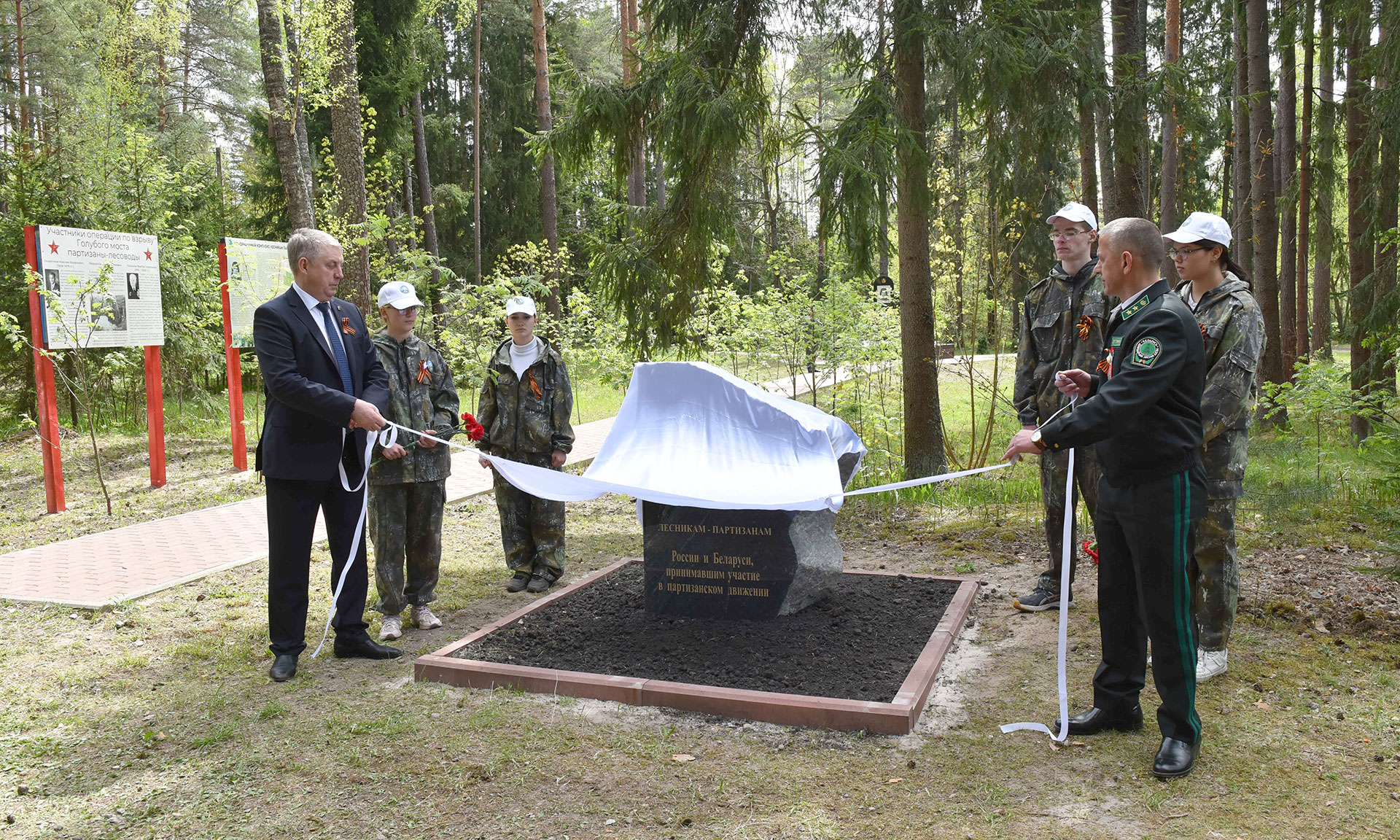 В преддверии празднования 80-й годовщины Победы в Великой Отечественной войне почетные гости открыли памятный знак «Лесникам-партизанам России и Беларуси, принимавшим участие в партизанском движении».