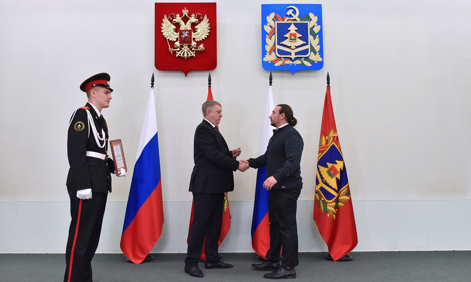 Наше торжественное мероприятие проходит в дни празднования 80-летия Победы нашего народа в Великой Отечественной войне. Наши отцы, деды и прадеды завоевали и подарили нам Великую Победу, дали нам право гордиться своим народом, своей страной, историей каждой семьи, историей нашего народа. Я поздравляю всех с юбилеем Великой Победы! Мы отмечаем ее в нашем приграничном регионе с особым чувством. Ежедневно наше приграничье подвергается жестоким атакам неонацистов.