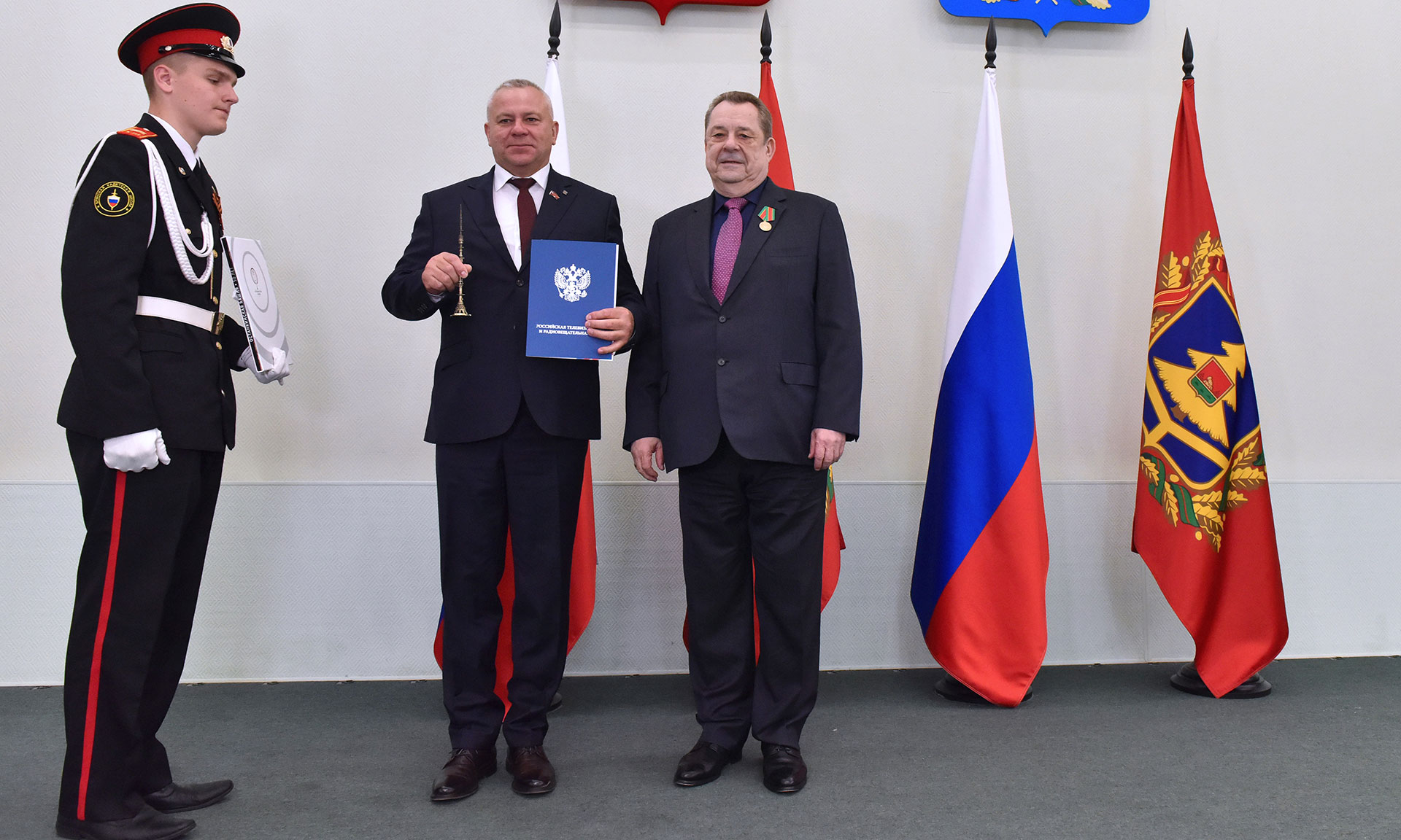 Генеральный директор федерального государственного унитарного предприятия «Российская телевизионная и радиовещательная сеть» Андрей Романченко в ответном слове поблагодарил Губернатора за тёплые слова и поддержку предприятия и выразил признательность силовым структурам за обеспечение безопасности специалистов и объектов телерадиовещания: