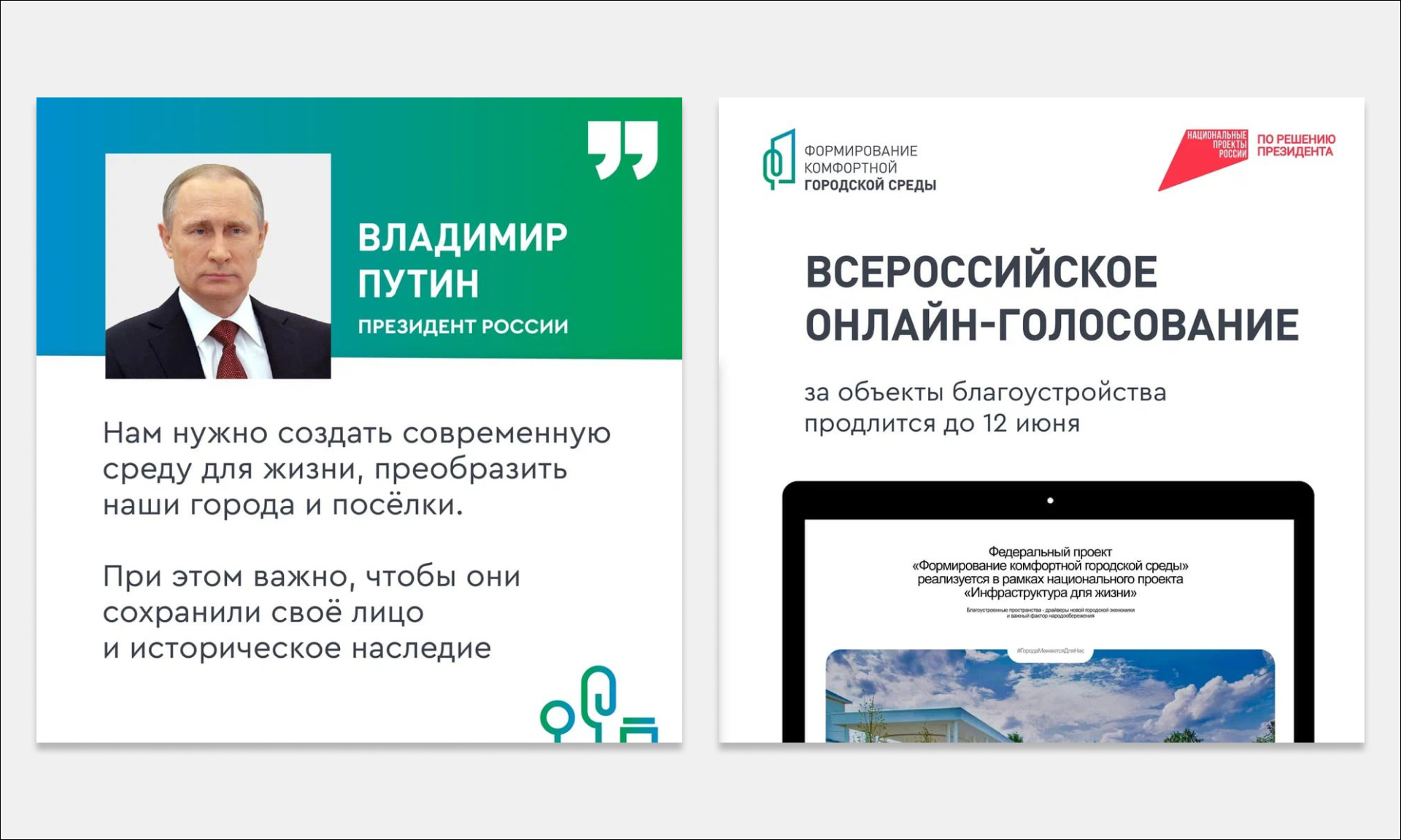 Приглашаю вас принять участие во Всероссийском онлайн-голосовании за объекты благоустройства по федеральному проекту «Формирование комфортной городской среды» нацпроекта «Инфраструктура для жизни». Он реализуется по решению нашего Президента Владимира Владимировича Путина.