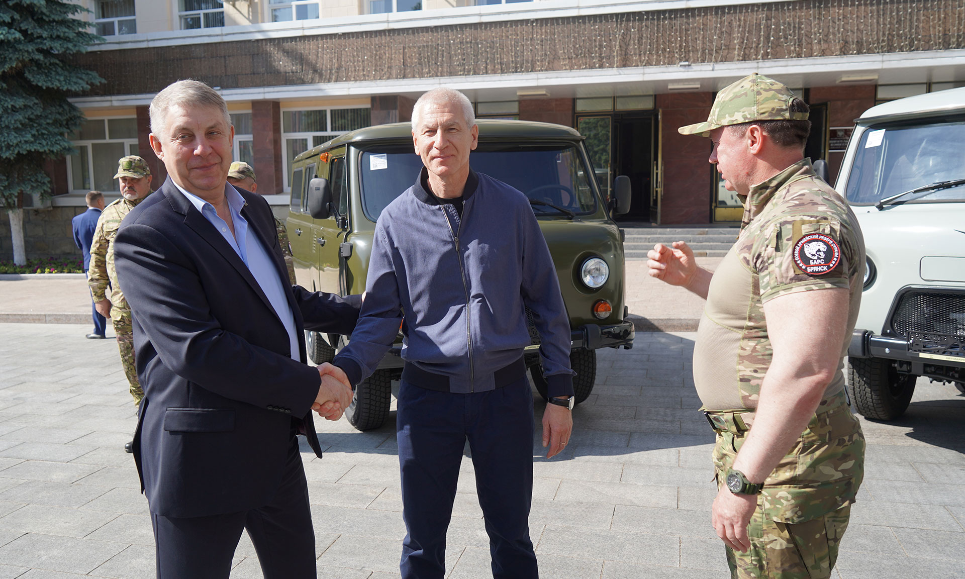 Александр Богомаз и Олег Матыцин передали новые автомобили добровольческой бригаде «БАРС-Брянск»