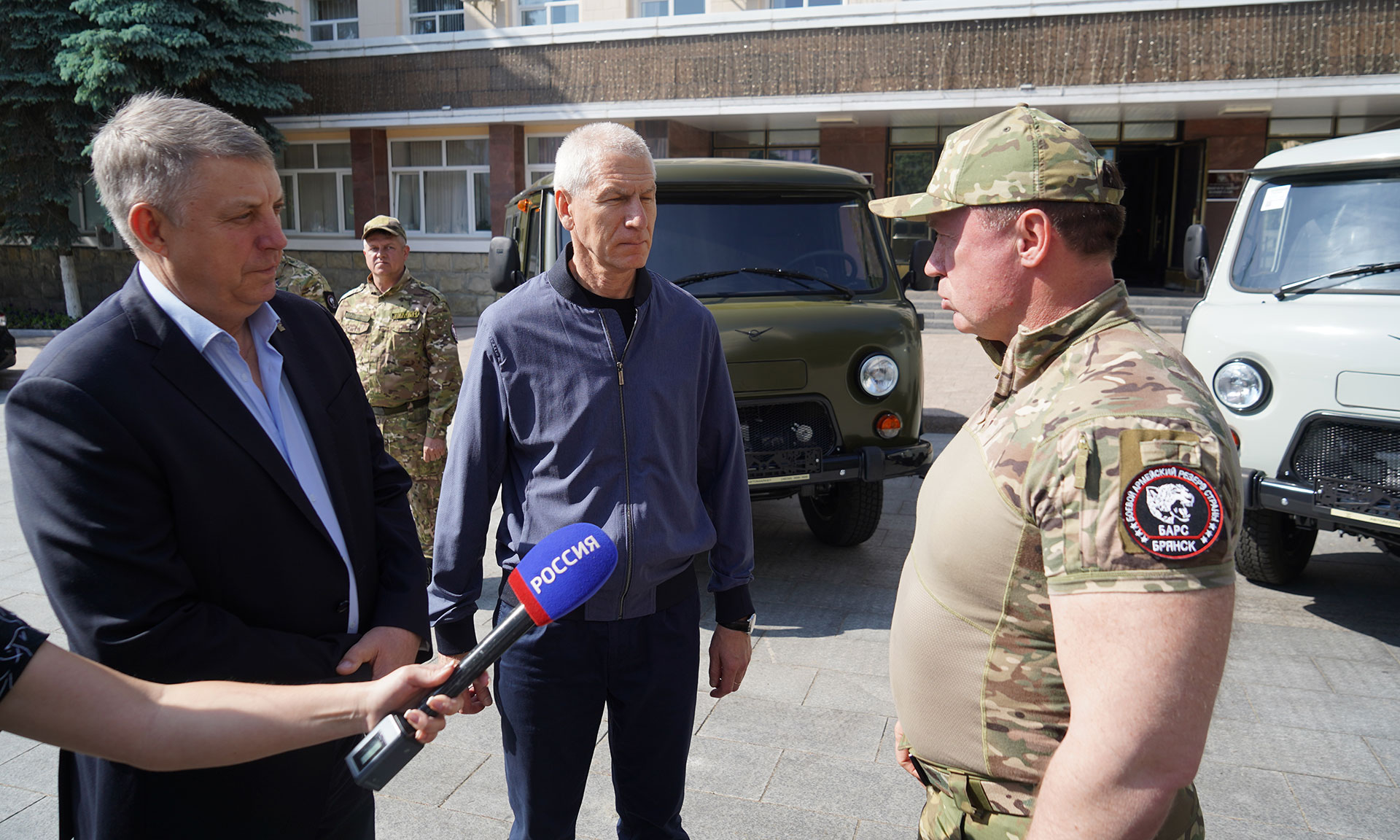 3 июня Губернатор Александр Богомаз и председатель Комитета Государственной Думы по физической культуре и спорту Олег Матыцин вручили добровольческой бригаде «БАРС-Брянск» ключи от автомобилей.