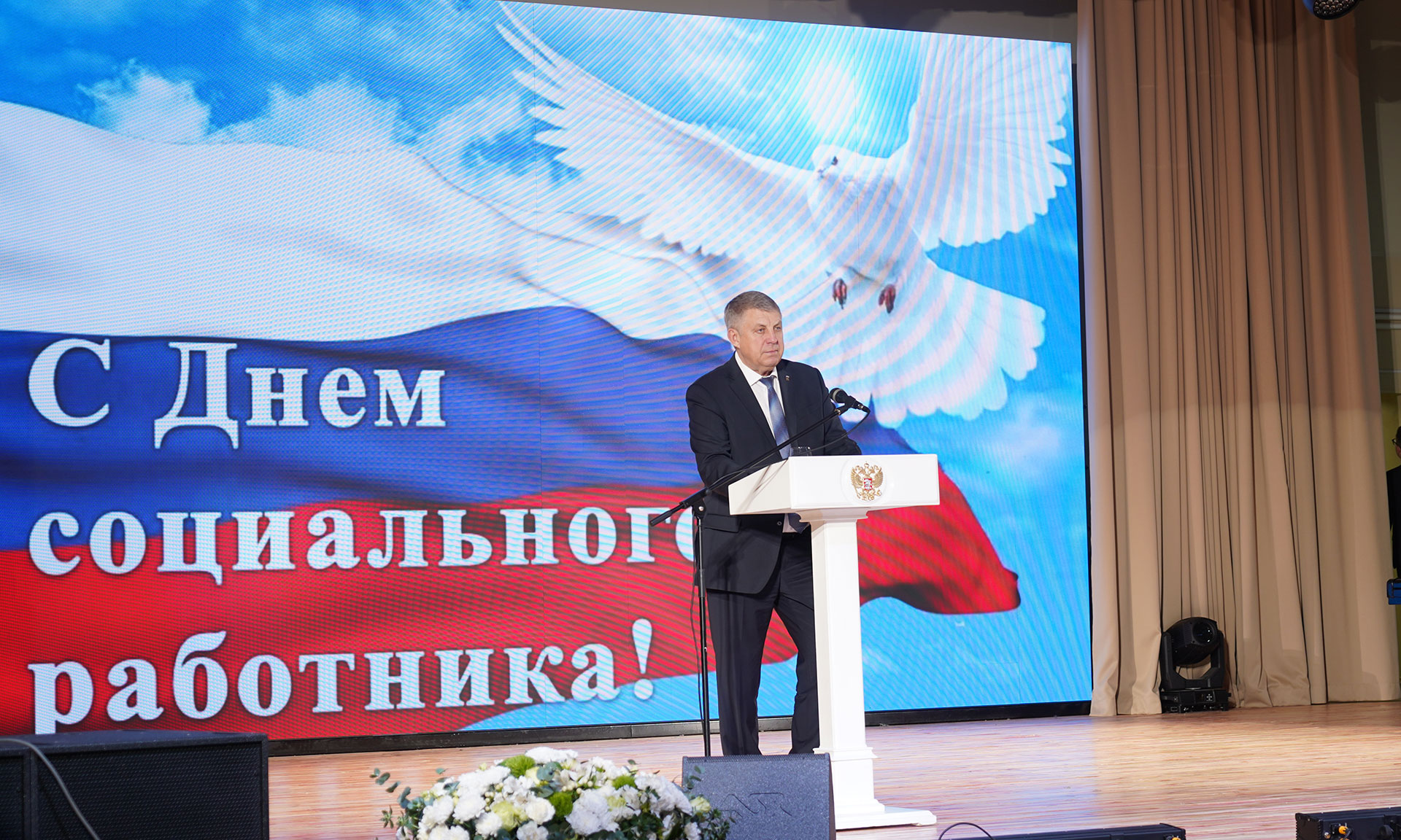 Поздравить социальных работников с профессиональным праздником пришли Губернатор Александр Богомаз, председатель Брянской областной Думы Валентин Суббот, главный Федеральный инспектор по Брянской области Андрей Дьячук, сенаторы Российской Федерации Василий Попадайло и Вадим Деньгин, депутат Государственной Думы Федерального Собрания Российской Федерации Николай Щеглов, заместители Губернатора Брянской области, руководители города Брянска, руководители федеральных территориальных органов государственной власти Брянской области, исполнительных органов власти.