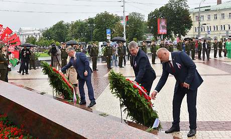 На площади Восстания участники мероприятия почтили память погибших в годы Великой Отечественной войны и жертв геноцида белорусского народа.
