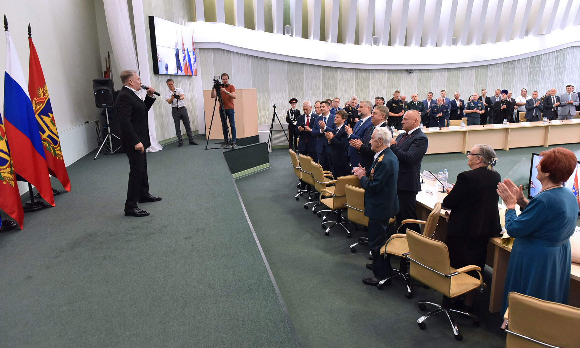 В этот день чествовали лучших профессионалов своего дела, высокими государственными наградами и почетными званиями были отмечены представители самых разных профессий: медики, педагоги, правоохранители, спасатели, водители школьных автобусов, работники сферы культуры, сельского хозяйства и спорта, объединяет которых ответственный и честный труд на благо родного края и всей России. Торжественная часть разбавлялась творческими номерами в исполнении ведущих коллективов региона.