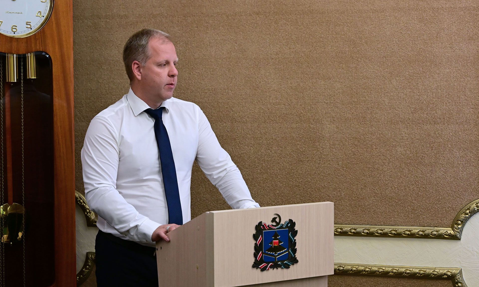 С докладом выступил директор Департамента социальной политики и занятости населения Брянской области Евгений Петров.