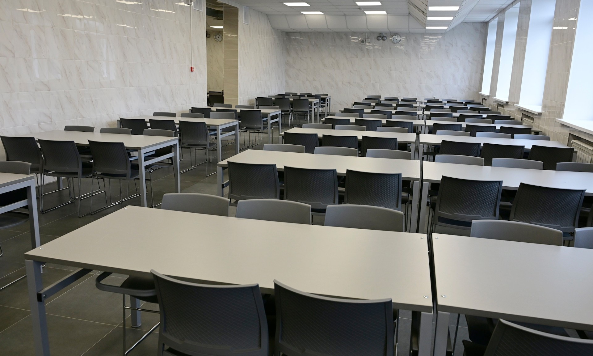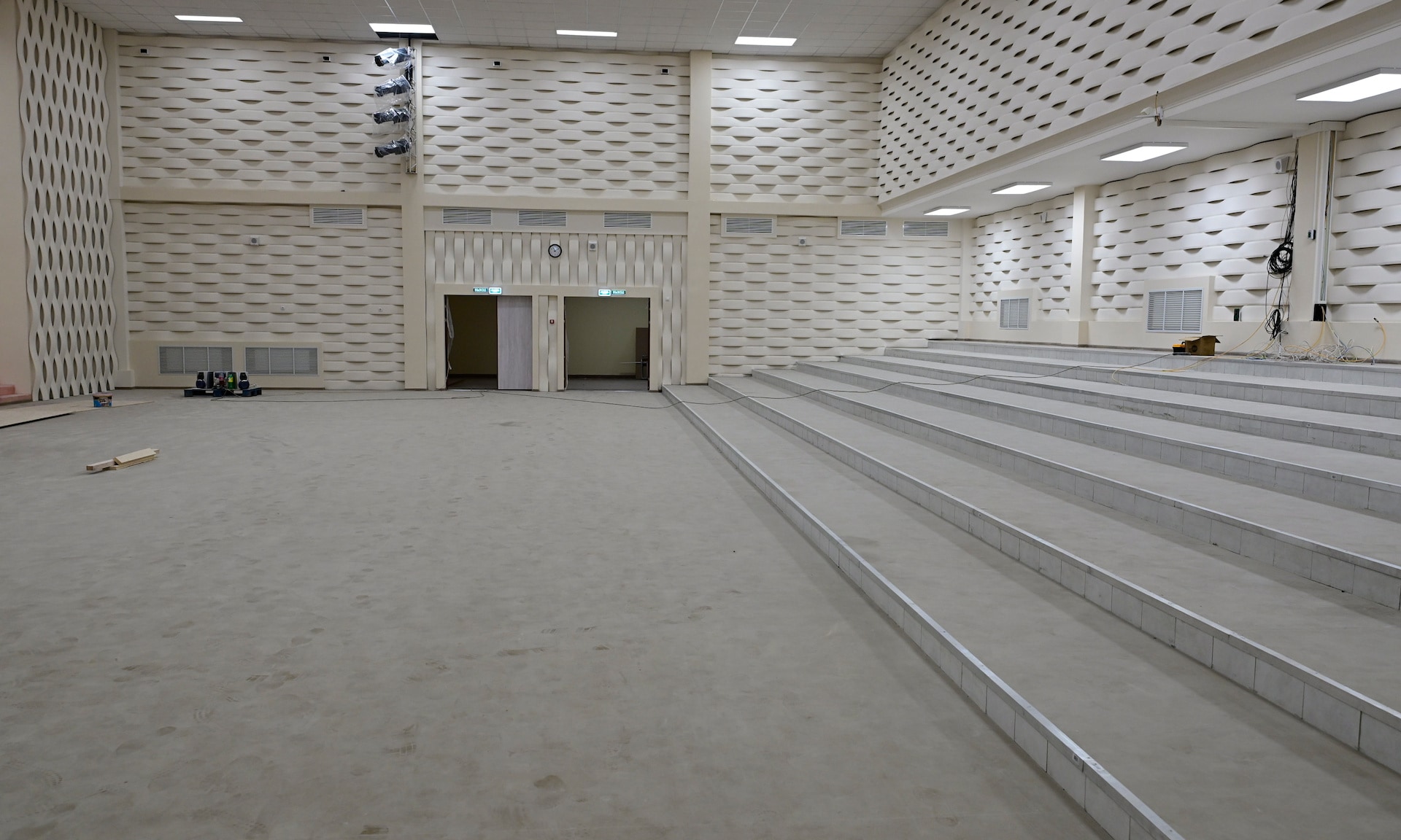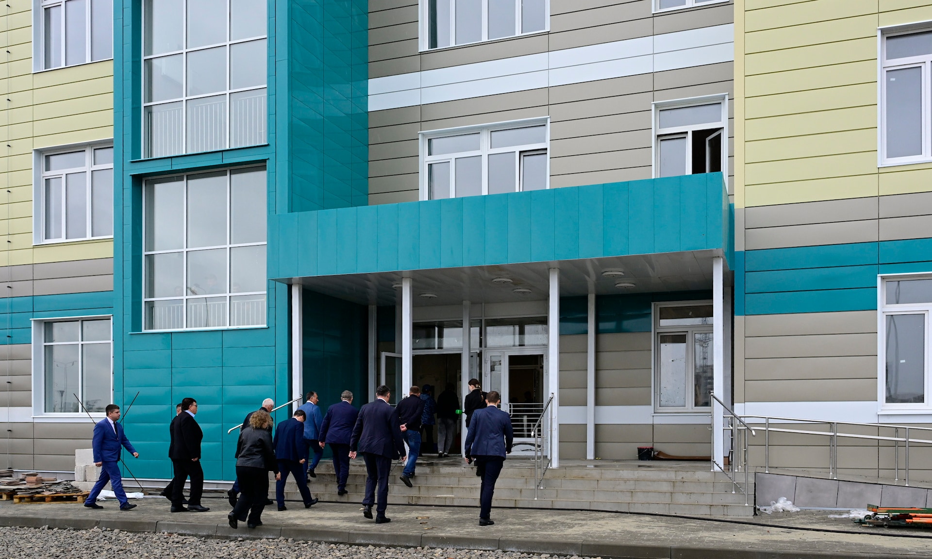 Сейчас здание приводят в порядок после строительных и отделочных работ. Заканчивается монтаж оборудования в столовой, остается еще расставить мебель, парты, кресла в актовом зале, завершить благоустройство территории.