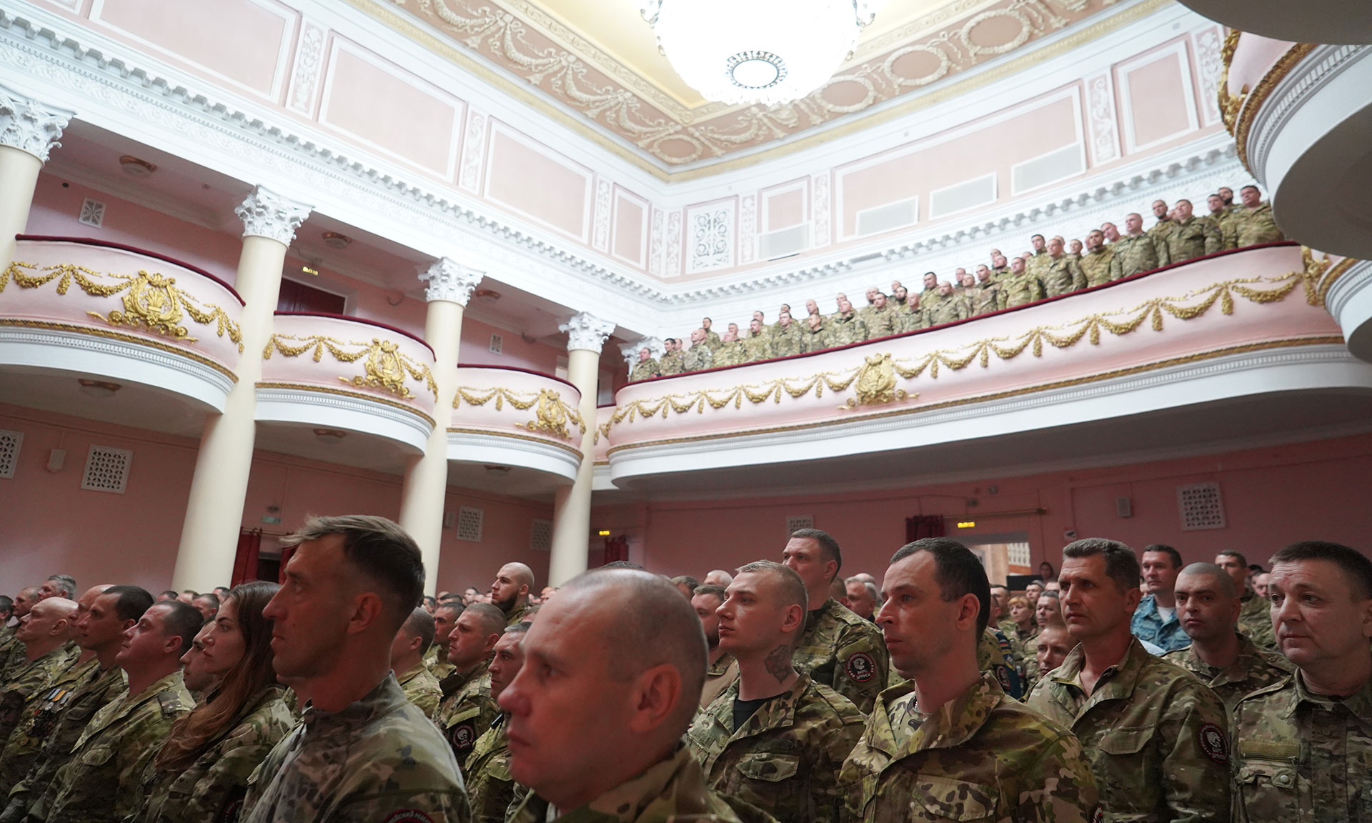 Об оценке государством нашего БАРСа говорят те награды, что сегодня получили бойцы: 8 человек удостоены государственных наград Российской Федерации, 28 — наград Министерства обороны, 83 — наград от Правительства Брянской области, Брянской областной Думы, 637 добровольцев награждены благодарностями и почетными грамотами командира БАРСа.