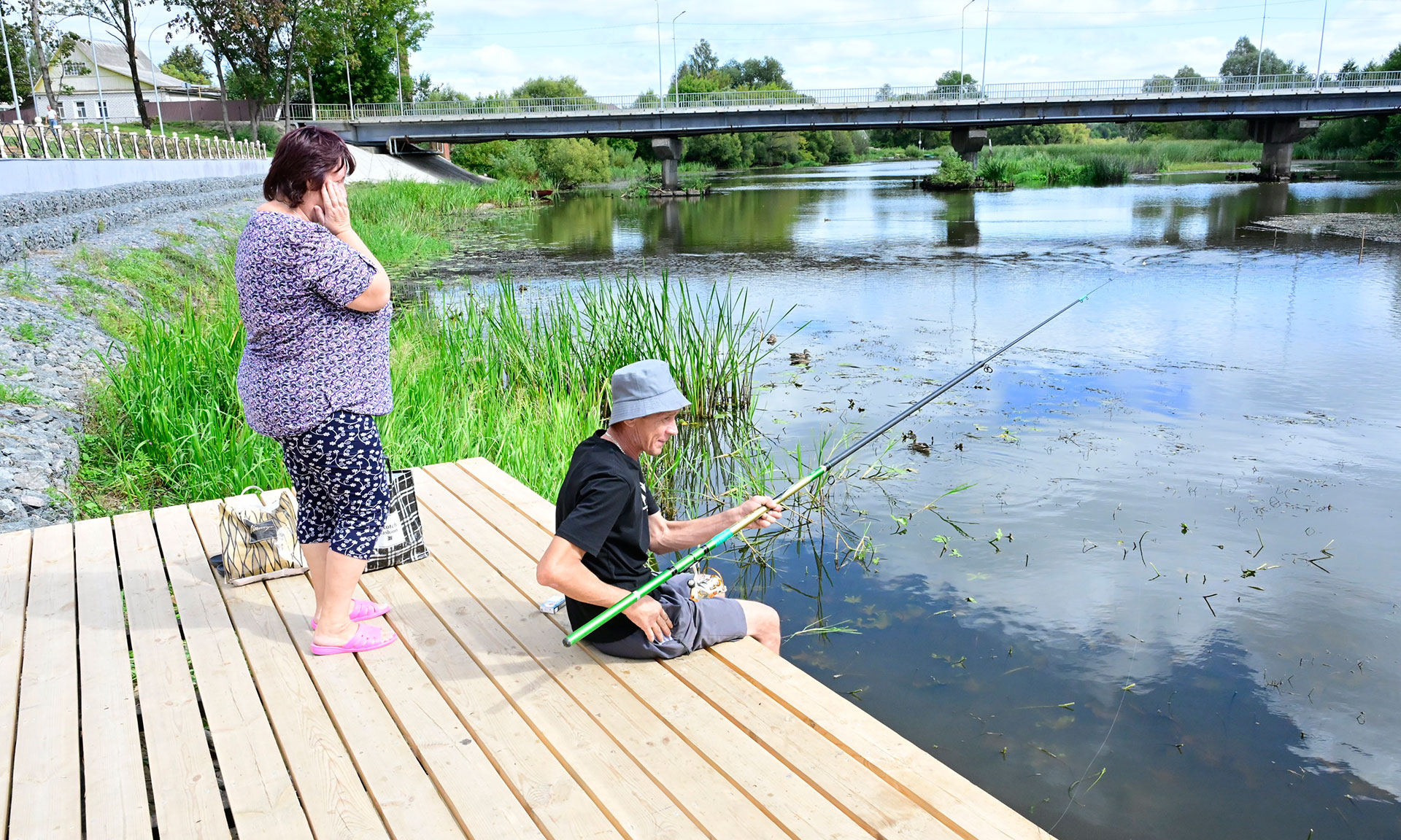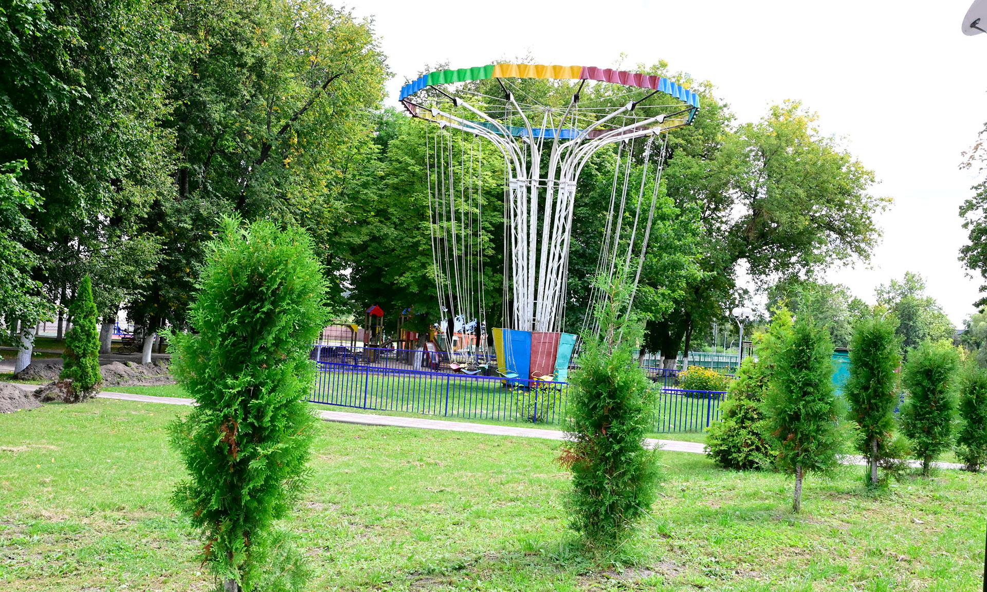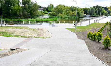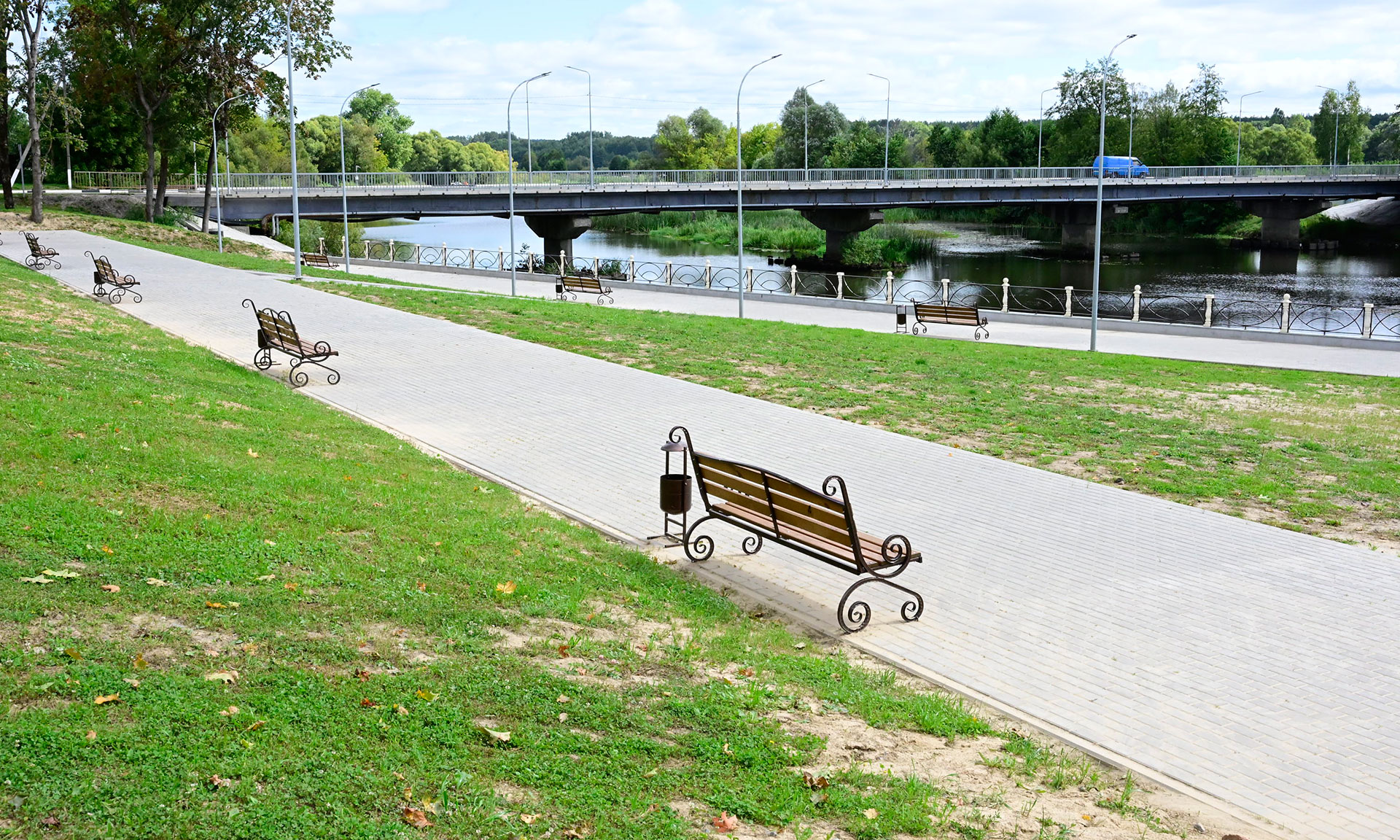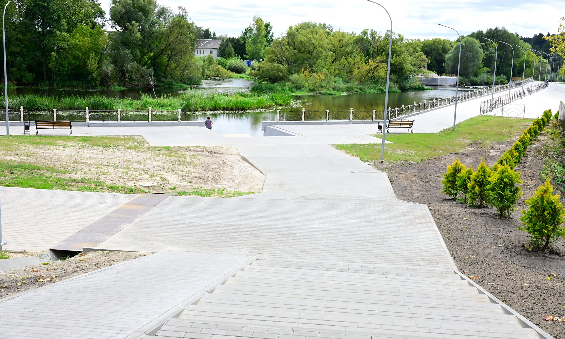 На центральной аллее установлен фонтан из двух чаш, в зонах отдыха — скамьи-качели, детская и спортивная площадки, новое кафе с видом на реку. Сейчас завершается благоустройство набережной.