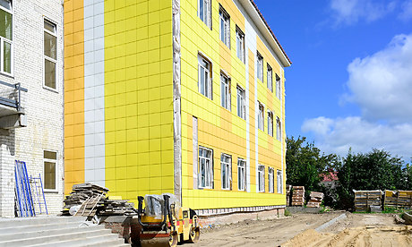 Сейчас готово здание, кровля, ведутся отделочные работы, монтаж систем отопления, вентиляции, благоустройство территории.