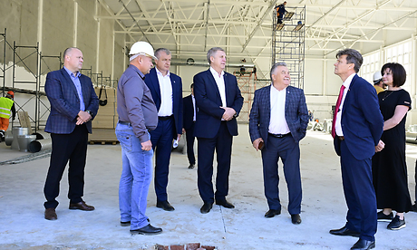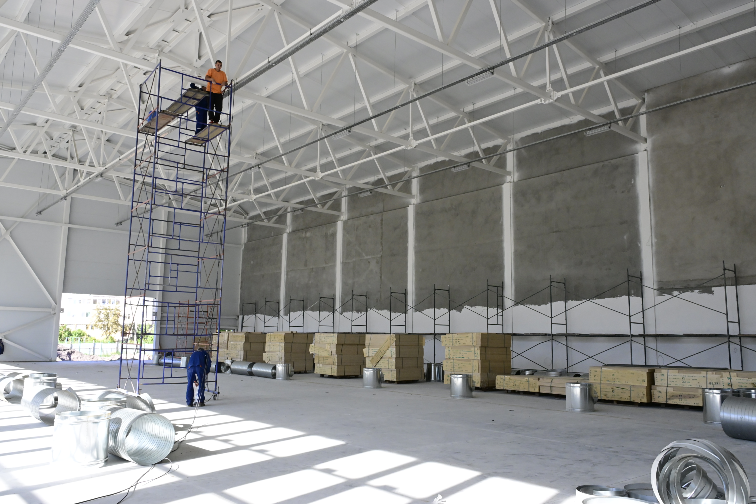 Объект должны сдать до конца года, сейчас техническая готовность — около 75%. Чаша бассейна проходит испытания на герметичность. Установлены оконные и дверные блоки, выполнены работы по монтажу отопления, электроснабжения. Смонтирована кровля, выполнены работы по прокладке наружных сетей водоснабжения, водоотведения. До конца сентября должна поступить блочно-модульная котельная.