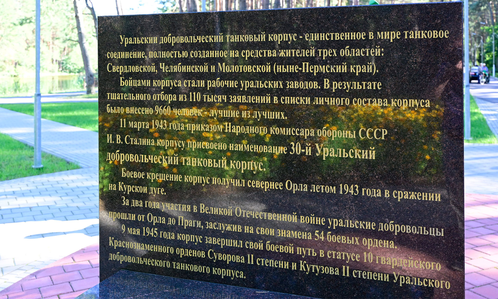 Парк культуры и отдыха в Унече был назван именем Уральских добровольцев в честь бойцов Уральского добровольческого танкового корпуса, первыми вступивших в освобождаемый от немецко-фашистских захватчиков город в сентябре 1943 года.