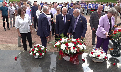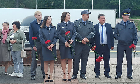 Участники торжественного мероприятия почтили память погибших во время Великой Отечественной войны водителей минутой молчания и возложили цветы к подножию памятника воинам-водителям.