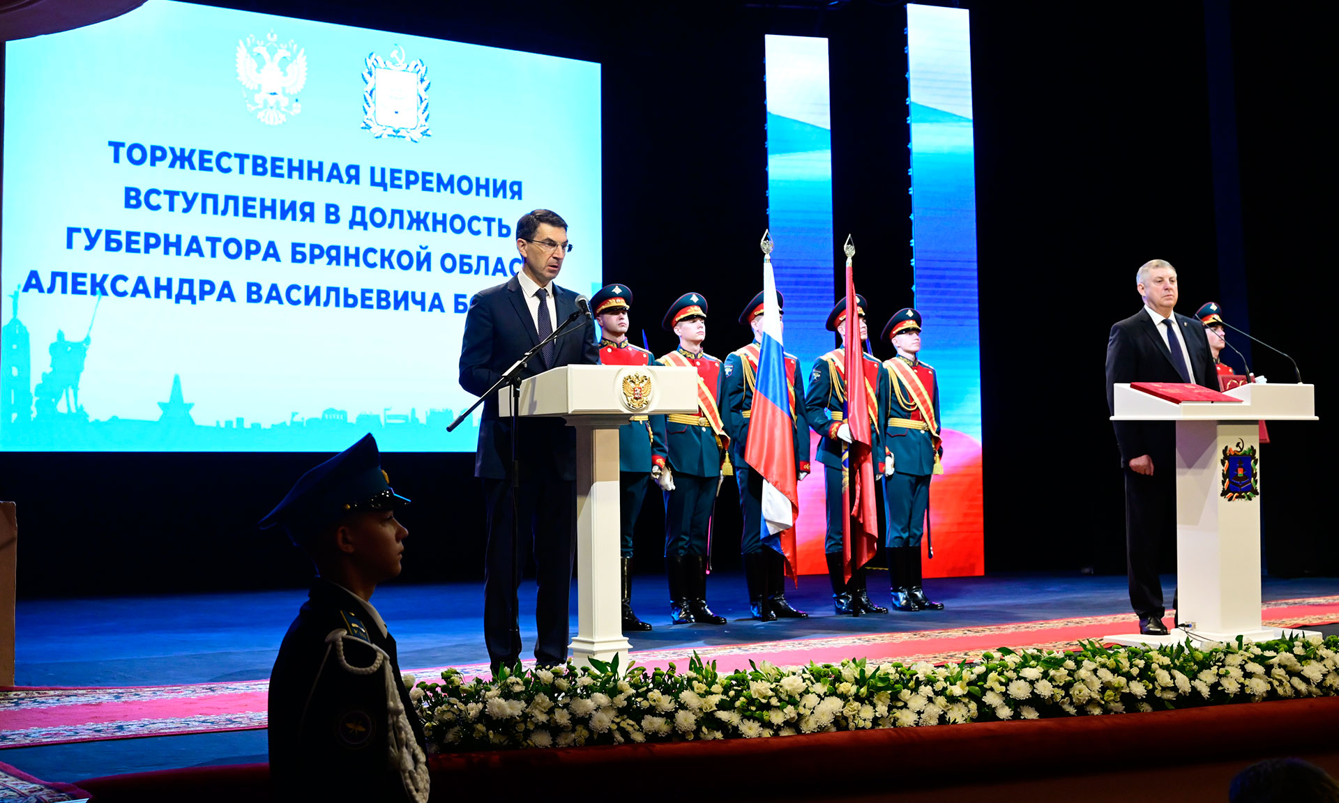 — Уважаемый Александр Васильевич! Уважаемые участники церемонии! Поздравляю Вас с официальным вступлением в должность губернатора Брянской области!