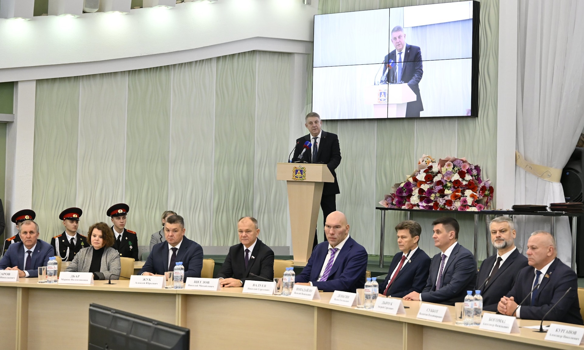 Благодарю Александра Васильевича Богомаза, председателя Брянской областной Думы, главного федерального инспектора по Брянской области, депутатов и сенаторов, которые пришли разделить с нами этот праздник.