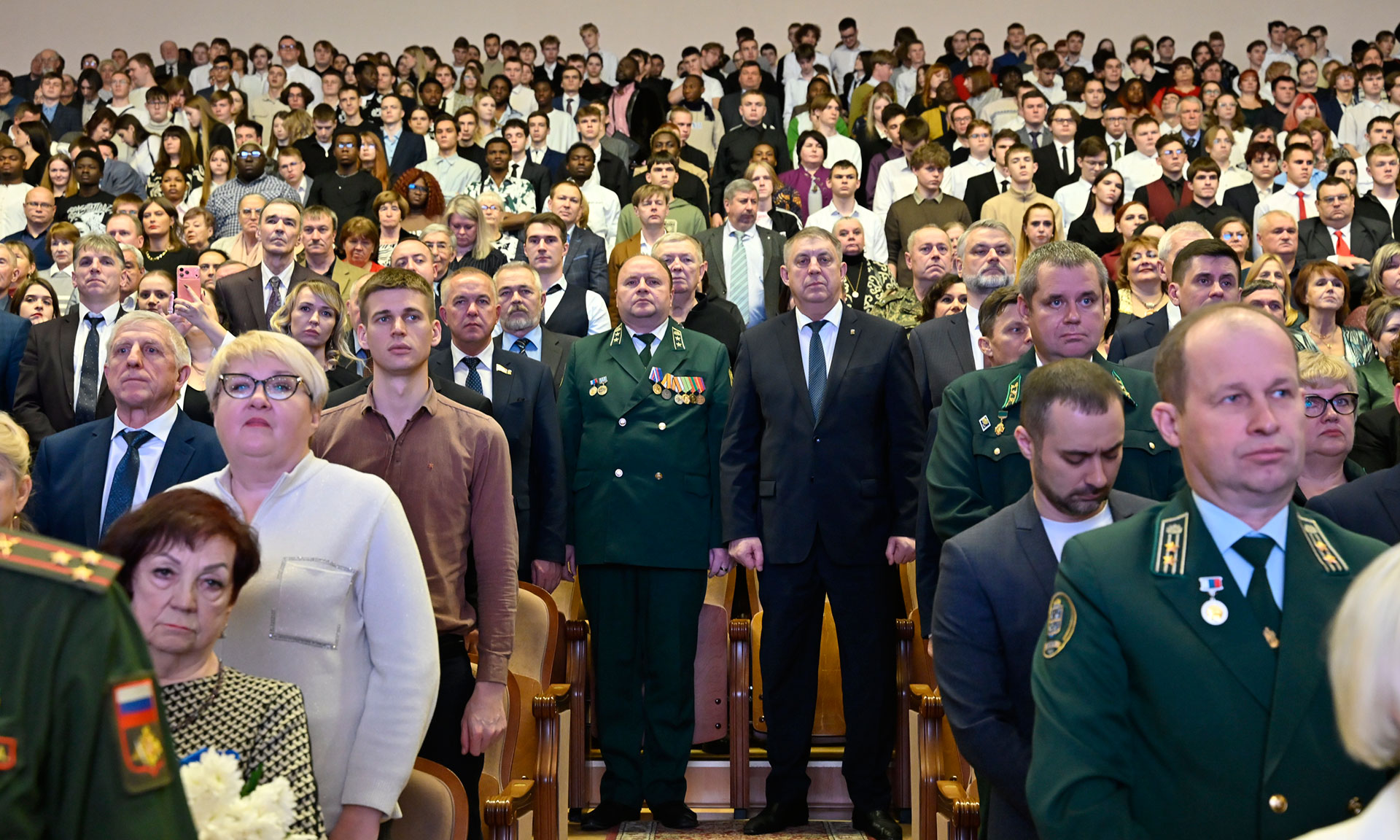 Хочу обратиться к коллективу Брянского государственного инженерно-технологического университета. Друзья! Мы по праву гордимся яркой историей нашего вуза, богатым наследием и заслугами своих предшественников и наставников — выдающихся ученых и педагогов. Сегодня мы бережно храним и приумножаем традиции отечественной высшей школы, развиваем вуз, укрепляем международное сотрудничество.