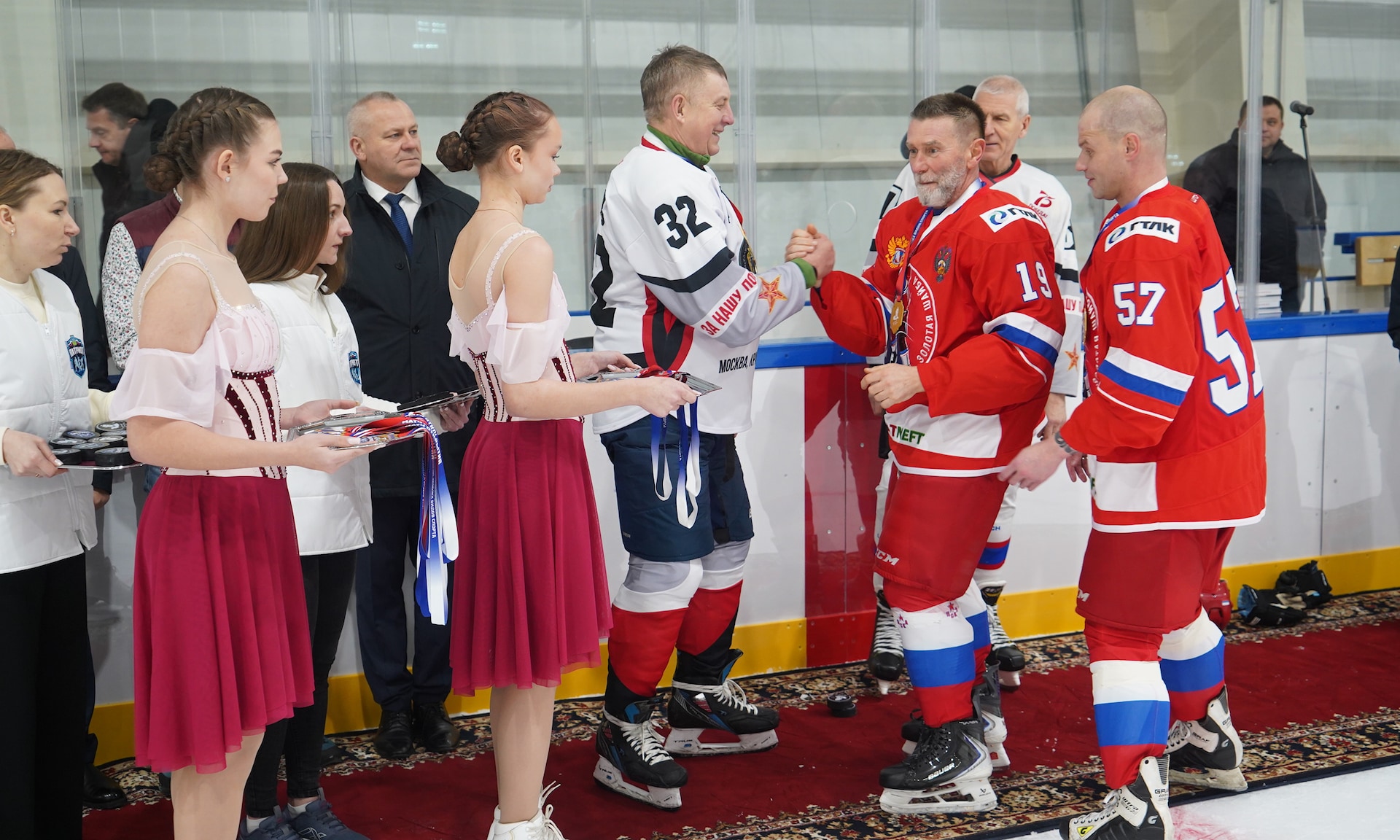 Я благодарен нашим ветеранам. Спасибо, что вы своим примером поддерживаете это великое действо, каким является спорт, и показываете пример верности спорту, нашим традициям, отечественному хоккею.