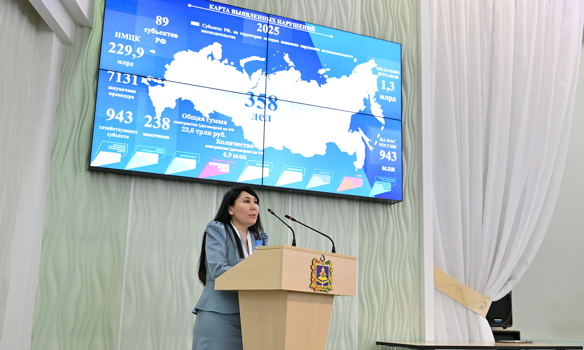 — Уважаемые руководители, уважаемые участники семинара! Приветствую вас от аппарата Полномочного представителя Президента России в Центральном федеральном округе на семинаре-совещании территориальных органов Федеральной антимонопольной службы России, который является важной площадкой для выработки единых подходов правоприменительной практики и даёт возможность обсудить не только текущие результаты работы, но и стратегические задачи, которые стоят перед системой антимонопольного регулирования.