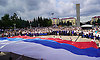 В День России жители прифронтового города Брянки, жены и дети защитников Луганской Народной Республики собрались в центре города и исполнили гимн Российской Федерации.